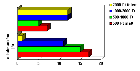 A játéktermeket rendszeresen és alkamlanként látogatók anyagi ráfordításának aránya a 14. kérdésre adott válaszok összesítése alapján.