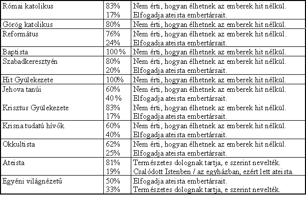 28 %-a tartotta természetesnek az ateizmust, míg a kérdõív