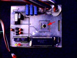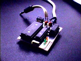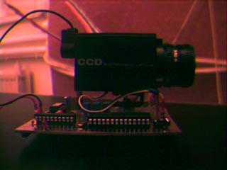 | モデム・ユニットのトランスミッタの方にはCCDカメラをマウント出来るように穴が空いています.(Gabor案) | こないな感じでモデム・ユニットのトランスミッタの基板にカメラがマウント出来るようになっています.で,これをラジコン・カーにマウントするためのものを作らねば... |