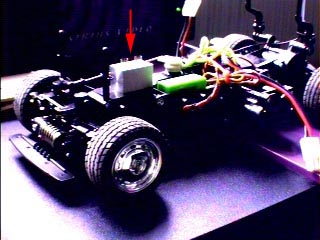 | 加速度計を取り付ける場所はココかな? | この位置で,前輪を左右に駆動するシャフトの邪魔にはなりません. |
