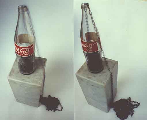 A: It was an extremely exciting exhibition for me, as I hadn`t shown anything in Hungary for 2O years. I was very curious about the opinion of some people. I was pleased to hear how they received my works. An article in the MAGYAR NEMZET wrote that this journey to Pluto was well worth it, and analysed why and how. It means that the journalist perfectly felt and understood it, and travelled with me. It is a good thing too. There`s somewthing else I would like to say about this Pest Pluto, that is why I considered it important to exhibit at the Liget. When I met the Helyettes Szomjazók (Substitute Thirsters), it was so different from what I had known of the Hungarian art scene, that I got really excited. What`s more, I saw the profile of the Liget. I was happy about joining something that I liked, and not making a Mücsarnok exhibition.