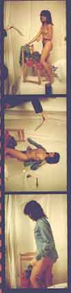 ruháját leveti – a vége felé széken ülve –, majd szép lassan újra felöltözik,