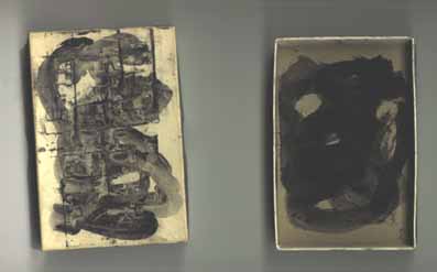 A Korniss Rimbaud Illumináció sorozatának - az egy jó régi, 48-49-50 körüli mű-sorozat - s a ducot, a fejet, ami egyben egy festőállvány, azt ő kivágta nekem s én indigóval földolgoztam. Van egy nagy széria Korniss-Tandori Indigók, s alá is írtuk mind a ketten, amik jól sikerültek.
