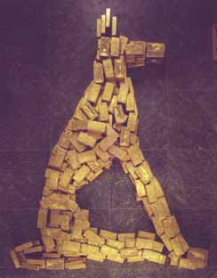 Kutya, amelyet 248 darab 12,5 kilós aranyrúdból rakott össze a Frankfurt