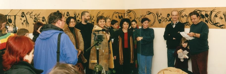 Történt egyszer, valamikor a kilencvenes évek elején, hogy elkészült egy munka, melyen Illés Anna jellegzetes grafikai motívumai sorakoztak. A mű a szitanyomó technika legegyszerűbb használatával készült, fekete festékkel, barna csomagolópapírra. A külsőségeiben szegényes alkotást készítője hamar megszerette. Szakszerűen fogalmazva: fölismerte emblematikus jelentőségét. Ám hiába, mert a kulcsmű kiállíthatatlannak bizonyult. A megismertetés legfőbb akadályát a csíkszerű formátum jelentette: nem illeszkedett a tévéképernyők, mozivásznak és könyvoldalak mintaarányaihoz. Baj volt a komponálással is. Az egyetlen pillantással átlátható képek között a fölsoroló elrendezés menthetetlenül idegen maradt. Mindez csak fokozta a mű jelentőségét. Mert semmi sem használ jobban egy képzőművészeti alkotás presztízsének, mint a bemutathatatlanság.