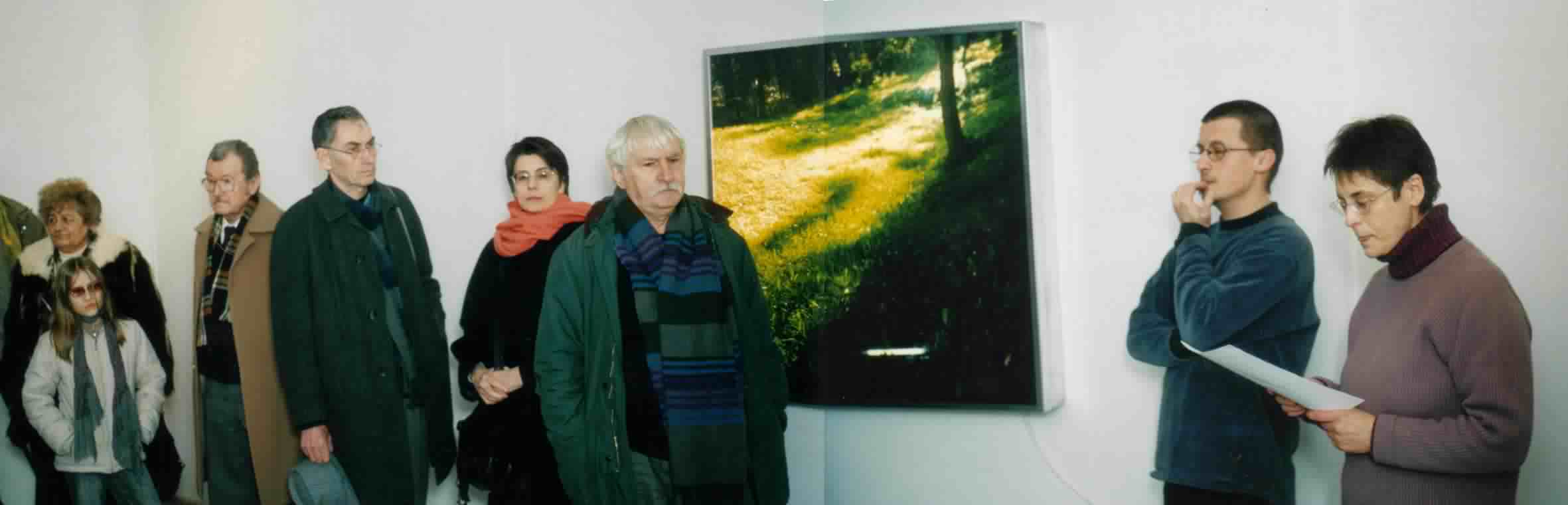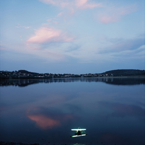 A másik tájat viszont a vedutafestők világot benyelni akaró tekintete fogja át. A tó tükröző tengelye épp a kép felezővonalán van, a majdnem romantikus naplementés fényviszonyokat a szelíd völgy szimmetrikus józansága és a víztükör rezzenetlensége nem engedi érvényesülni. Nem viharos hullám, sem tajtéka, de véletlenül ottfelejtett zokni sem, hanem a tavon egy szándékosan elhelyezett neoncső bontja meg az idilli képet. Ha nincs világítótáblán megjelenő tihanyi Belső tó, nincs kérdés sem. Csak technika