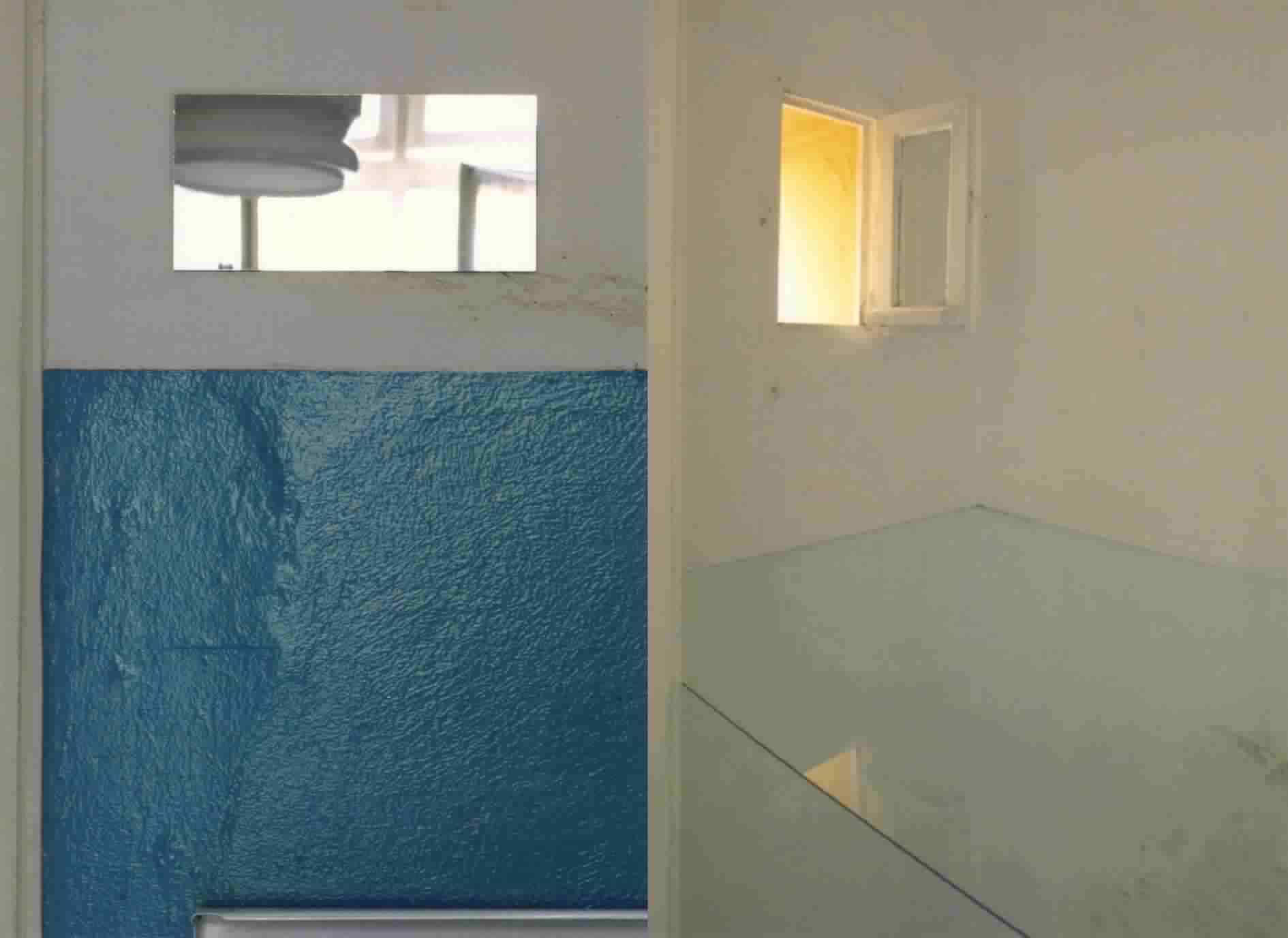 in the gallery. She works with glass and mirrors. In her work, the reaction