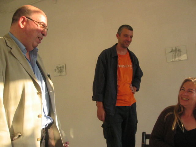 Peternák Miklóssal a borszaküzletben találkoztam, onnan invitáltam a kiállításra, amire el is jött. Finom bort vásároltam, mondtam, ha jön meg is kóstolhatja.