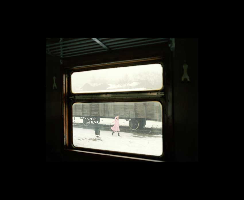 I titled the image " Anne's signal" This is a piece about my naive way to re-enact a character of a girl, who hid in the attic during teh WWII, 60 years ago. We can't mistakenly see the image just as a documentation of the activity, but as a fictional/non-fictional narrative that interweaves with the history of the past.In "Departed" the same small open palm on the other side of the reflection from the window is waving to the departing train without a word or a scream; from the dark carriage her figure might not be seen, even in her bright pink dress.