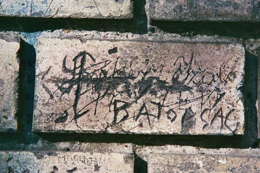 A jelhagyást valamilyen elemi ösztön diktálja, főképpen saját megnyugtatásunkra. Mert ezek a minket túlélő tárgyak testébe karcolt puszta létigék, másoknak ismeretlen nevünk, másoknak megfejthetetlen ábráink leginkább a tagolatlan magány megörökítői. Van–volt, asszony–férfi, öröm–bánat, élet–halál – ennél se többet, se kevesebbet, se közhelyszerűbbet, se emelkedettebbet nem mondanak a téglák.