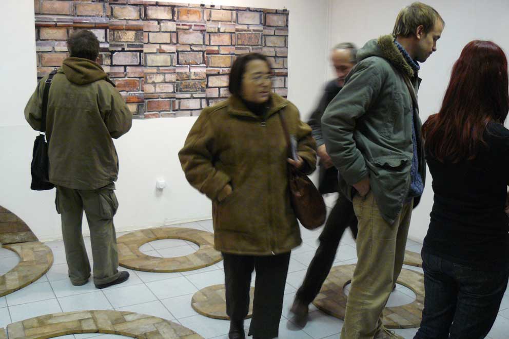 Rolf ugyanis nyersanyagként használja a régi bécsi parkettákat, méghozzá úgy, hogy modul jellegüktől is megfosztja őket. A síkként, felületként kezelt padlóból koncentrikus vágásokkal köröket és gyűrűket készít. Azt szeretné, ha újdonsült tárgy mivoltuk ellenére megkísérelnénk járkálni közöttük és rajtuk.