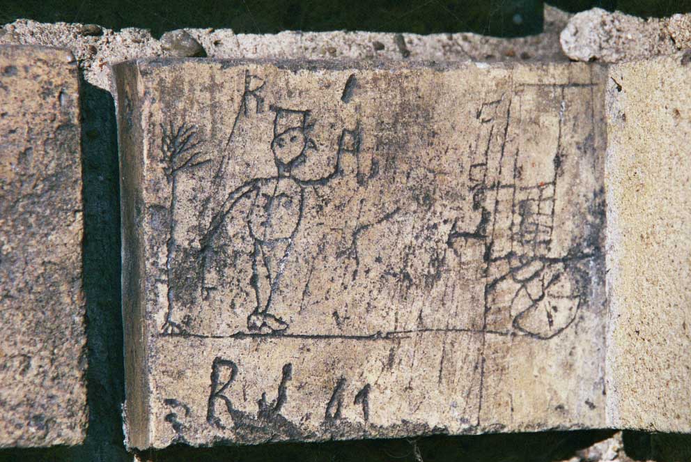 Mindhárom épületet a dualizmus kori középületek jellegzetes burkolóanyaga, az úgynevezett nyerstégla fedi. Gyakorta találkozunk vele így ma is a korszakban emelt kórházak, iskolák, közüzemek és -raktárak, piaci csarnokok, laktanyák vagy templomok felületein, s olcsósága, látványossága és tisztán tarhatósága miatt mára ipari műemlékké szépült gyárépületeink nagy többségének falait is ez fedi. Az elnevezése megtévesztő, hiszen fényes felülete és a közönséges tégla szilárdságát fölülmúló keménysége épp a nyerstégla magasabb hőfokon való kiégetése révén áll elő. Nem értelmetlen mindemellett, mert épp a belőle épített falfelület vakolásának szükségtelenségére utal. Bár építészeti üzenete a közfunkció látványos különbözésének hangsúlyozása volt, a valóban komoly tekintélyt sugározni kívánó középületeken már nem alkalmazták. Számunkra – és persze a firkákat, rajzokat rájuk vésők számára – mindebből annyi fontos, hogy az időjárás viszontagságait jól tűrő felülete kiválóan alkalmassá teszi az utókornak szóló üzenetek megőrzésére. E kiállítás befogadóképessége véges, aki azonban türelmes szemmel nézegeti más ilyen épületek falait, további becses üzenetekre akadhat.