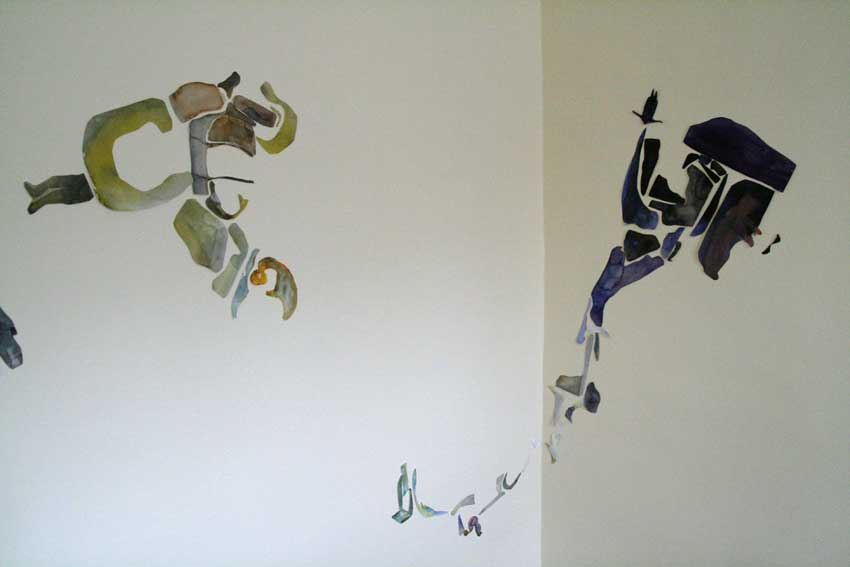 The physicality of making art and experiencing it. An artwork may also be a place that can be changed and reshaped. A viewer is surrounded by a painting put together of fragments, made specially for this space. The exhibition will be modified during its existence.