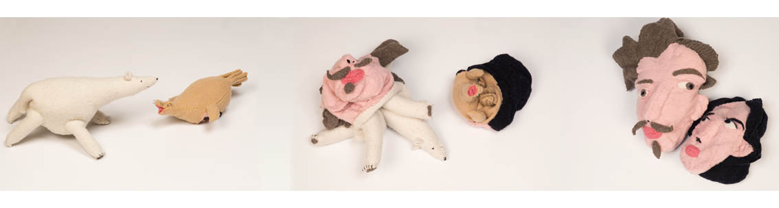 I like soft things, I think everyone does. My works I sew by hand could actually be toys. Soft figures that are good to touch, one has to play with them at once. I sew the world, my own world. My first inspiration was a toy animal I was given a long time ago. I thought a lot about making objects that combine childishness and its free abandon with art or at least with the problems of life of grown-ups. I observed the characteristic types of plush figures and realised I like those the most which provoke interaction. Memories of my early encounters with these figures also supported this feeling. As a child we learn situations as we play, the sensations of colour, touch, smell or taste of our toys have deep impressions on us.