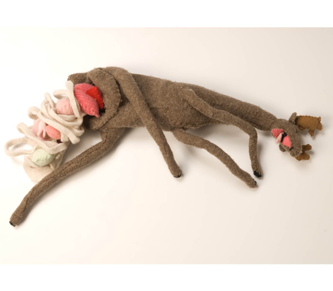 These impressions come to the surface again as we grow-up when encountering a colour, a fabric, a touch. I would like to revive these deep memories, but with different narratives. I create figures and imagine what might be inside, or what would happen if… What would happen if there were mechanical gadgets inside them that made them move, or if they were turned inside out: would they become something totally different, would they have a different meaning? This is an in-between state: sometimes I feel it play, sometimes artistic creation. Maybe it is possible because they have one common characteristic: freedom – in both cases everything is possible. It is up to me what the material I work with may turn into, according to what rules I play, how I project the world.