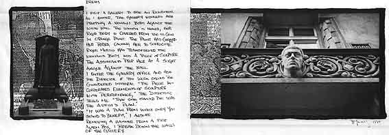 IN THE END OF THE DREAM WE HAD BECOME INVISIBLE. I AM FILLED WITH A SENSATION OF HAPPINESS UNLIKE ANYTHING I HAVE EVER KNOWN. IN A SECOND PART OF THE DREAM I AM ALONE. THE SENSATION OF HAPPINESS HAS LEFT ME. I CAN REMEMBER NEITHER WHEN NOR HOW IT HAD BEEN REAL TO ME, ONLY THAT IT ONCE HAD. I AM DESOLATE, YEARNING FOR THE MEMORY OF A DREAM.I NO LONGER WISH FOR FLYING DREAMS, FOR THEY ARE THE SADDEST DREAMS OF ALL. THEY OFFER A PROMISE OF LIGHTNESS THAT CANNOT BE KEPT. THEY ARE A CHEAT, AN ILLUSION.