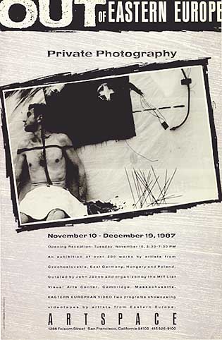 1 “Out of Eastern Europe: Private Photography” (Kelet-Európán kívül: Privát fotógráfia) MIT List Visual Arts Center, 1987. A Ligetben és a Galéria 11-ben 1986-ban több, mint félszáz kelet-európai vagy innen emigrált művész munkáit állítottuk ki, az MIT-ben 30-an kerültek bemutatásra, persze ott már több és nagyobb munkákkal is. Az MIT-ben már nem szerepeltek Román, Bolgár, Jugoszláv, Szovjet illetve emigráns művészek. Az elôbbiek azért nem, mert már a pesti kiállításon is csak elenyésző számban vettek részt, illetve mert a jugoszlávok nem kis része tiltakozott ellene, hogy őket kelet-európaiaknak tekintsék.