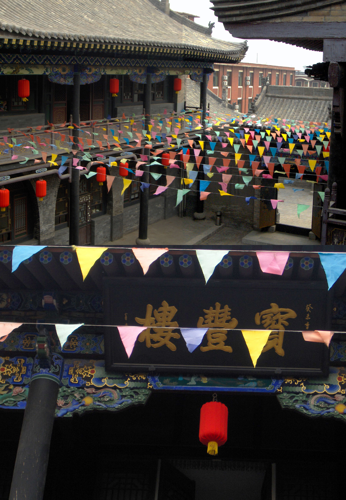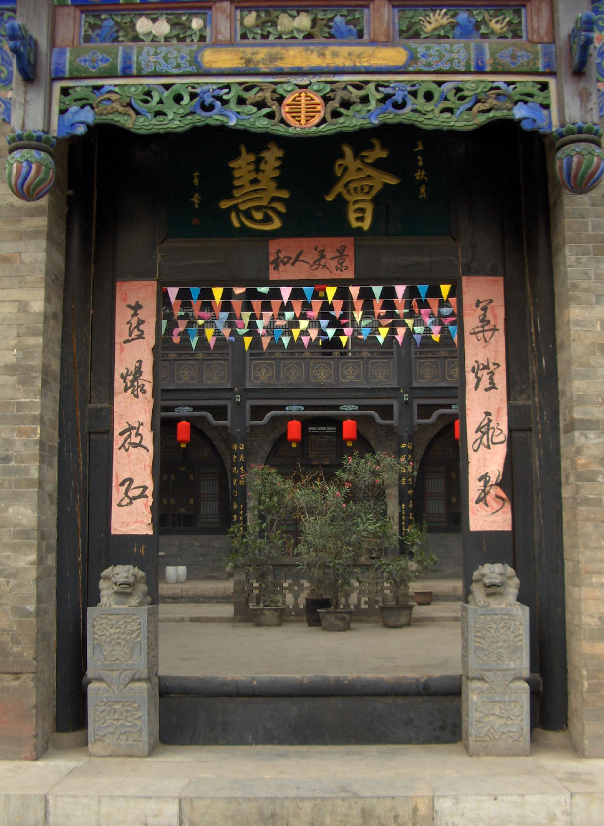 a kép lényeges eleme a küszöb. pingyao a 16. századtól gazdag kereskedőváros volt, saját bankokkal, bankárokkal. a megemelt küszöb funkciója eredetileg az volt, hogy megnehezítse a tolvajok számára a lopott holmival történő gyors távozást, később a küszöb magassága státusszimbólummá vált.![]()