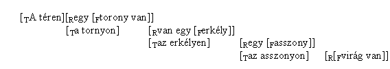 Az (1) példában négy tagmondat alkotja a réma–téma-láncot (ahol az F a főhang