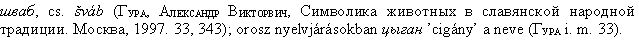 i. h.), tót-rák ’béka’ (MTsz.: i. h.). Egyes szláv nyelvekben szintén a sváb