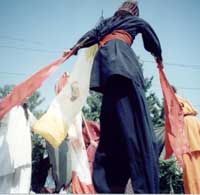 | A Maskarás együttes immár tizenötödik esztendeje járja a világot vásári bábjátékkal, óriásbábokkal, gólyalábakon. Az együttes a középkor maszkos alakoskodó, bábos hagyományait kívánja megidézni, felújítani, a ma embere számára érthetővé tenni. A kíséretéül szegődött sípos-dobos zenészek régiónk zenéjéből merítenek. Kicsiknek, s nagyoknak ritka élményt jelent a hórihorgas kompánia produkciója. |