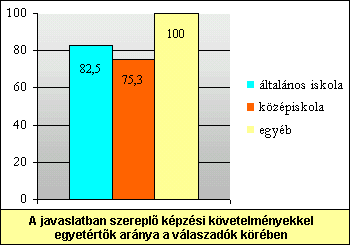 A válaszok statisztikai megoszlása azt mutatja, hogy a kollegák ma már világosan látják, hogy a terület oktatására nem vállalkozhatnak kizárólag az alapdiploma adta felkészültséggel. A javaslat támogatása teljes körű a szaktanácsadók körében.