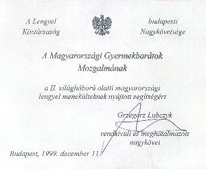 "Meggyőződésem, hogy a gyermekek jogaira és szükségleteire összpontosító politika az egészséges társadalom jellemzője... ... megnyertünk norvég non-profit szervezeteket és társaságokat, hogy a gyermekek között végzett munkával vegyenek részt az erőszak, a kábítószerezés és bűnözés elleni egységes fellépésben... ... Az olyan non-profit szervezetek, mint a Magyarországi Gyermekbarátok Mozgalma nagyban hozzájárulnak e munka sikeréhez. Támogatást érdemelnek tehát a gyermekek sorsa iránt felelősséget érző minden személytől. ... Sikert kívánunk a "2000.év gyermekkönnyek nélkül" elnevezésű kezdeményezésükhöz és szervezetüknek a magyar gyermekekért végzett munkájához."