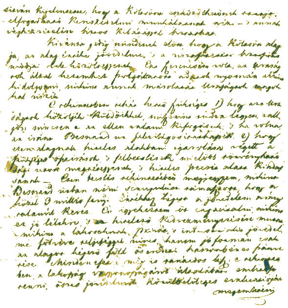 c) Utalok arra is, hogy Kossuth igazi érzelmi lény, még hivatalos leveleiben sem tudja elrejteni érzéseit. „Valóban mondom – írja a 4. levélben – én szinte rettegek, ’s kivánom hogy Besnard még ne jöjjön meg”, tudniillik a csongrádiak ekkor még nem egyeztek meg a földesúrral, és addig nem lehetett szó a kölcsönről.