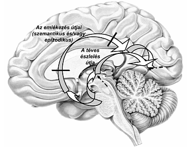 Az agyi aktiváció két fő iránya egyfajta keretet és kiindulási pontot ad a fenti lehetőségek közötti tájékozódásban. Ezek az aktivációs irányok az agykéreg alatti területei által történő mozgósításnak a lehetséges útjai, amelyek közül az egyik az ún. hátsó vagy dorzális útvonal, a másik pedig az elülső vagy ventrális útvonal. A dorzális útvonal a téves észlelés útja, mivel ezen az útvonalon történik meg a valóságos észlelés is az ébrenlét ideje alatt. Ez az útvonal az agytörzs, a köztiagyban a thalamus bizonyos agyanatómiai képletei és az agykéreg között teremtenek felszálló kapcsolatot. A ventrális irány ezzel szemben inkább az emlékezés és/vagy az absztrakt emlékek talaján nyugvó képzelet útja lehet, mivel ez megkerüli az észlelés útját, és közvetlenül az emlékezés epizodikus és szemantikus tárházai irányából mozgósítja az agykérget. Ez a mozgósítás nagy vonalakban az agytörzs, a bazális előagy és az agykéreg hármasával jellemezhető (2. ábra).