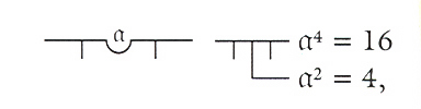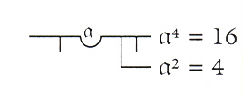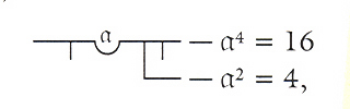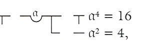 azt az ítéletet fejezi ki, hogy a négyzetgyöke négynek és a nem negyedik gyöke tizenhatnak fogalmak egy másodszintű alárendeltségi viszonyban kapcsolódnak össze. Mint