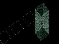 Il tombe dans un espace baigné de vide dont les murs, le sol, le plafond sont absents. Seulement des lignes qu'il peut traverser.