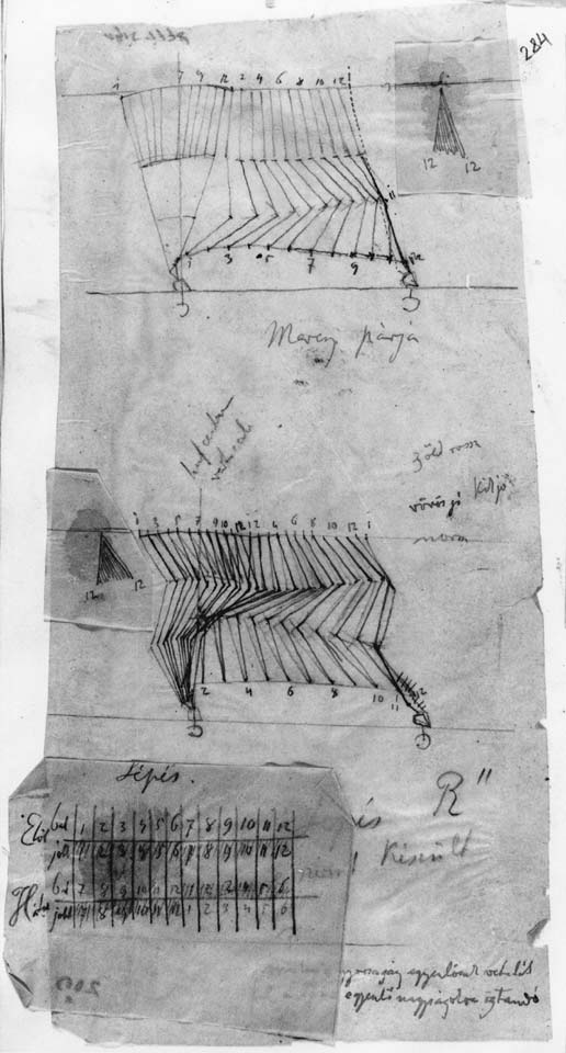 Lépés, szerkesztés "R" szalaghoz. / The walk, construction for strip "R". XVI/II. vázlatkönyv / sketchbook. Magyar Nemzeti Galéria, Grafikai Osztály / Hungarian National Gallery, Graphics Department, Ltsz. / Inv. Nr. 1915-1778/II., fol. 284.