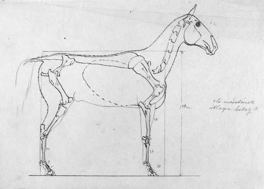 5 ló méretének átlaga. / Average of the size of five horses. A Magyar Képzőművészeti Főiskola Könyvtára. / Library of the Hungarian Academy of Fine Arts.