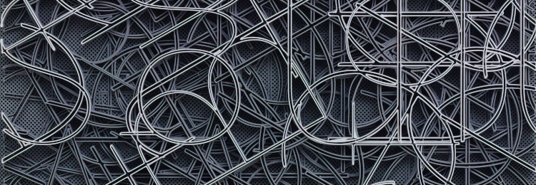 The motto of the Hardly Readable Works series is a text from Jonathan Swift’s Gulliver’s Travels. In this episode, Gulliver visits the Academy of Lagado, where the academics suggest that in order to protect our health, we should avoid speaking because it strains the lungs. As words are symbols for things, we should show the objects themselves during our conversations. I use the words from this episode as objects, as the three-dimensional word chains – the words themselves – are also objects. |