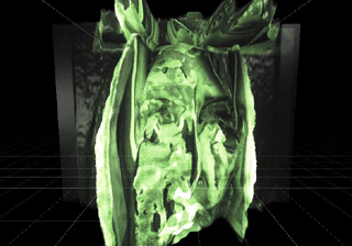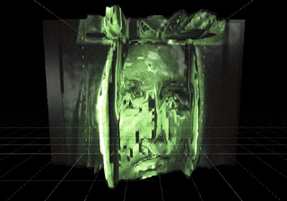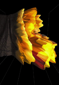 Camouflage has been developed for the exhibition "Vision - Image and Perception" in 2002, thus it is addressing the "magic talent" of the human visual perception system in recognizing familiar objects. The process of realizing the virtual reliefs is similar to the situation when we are able to identify a friend's face from a huge crowd of people in a public space. The installation emphasises the moments of dissosiation of a familiar object from the chaotic data-cloud of spatial structures.