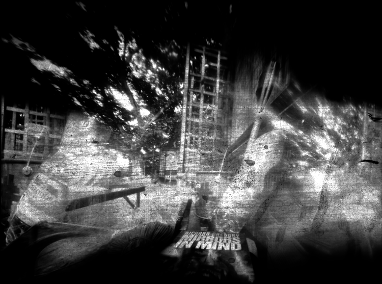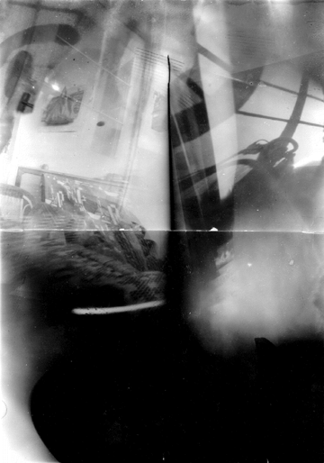 Even for my pinhole photographs way back in 1990, I made use of two other major characteristics of the medium, owing to the fact that in lack of a lens, no optical distortion occurs in the image (i.e., straight lines remain straight, and the geometry of imaging can be clearly constructed). It does not only imply that every detail of the world in front of the camera will be focused, but that you are free to place the light-sensitive material anywhere within the box itself; you will get focused imaging at every single point. In 1991, after experimenting with tilted image planes of various angles, I started to work with films folded (and sometimes randomly squeezed) into the pinhole camera. Here, in addition to imaging the world, the photographic raw material, with its shadow cast on itself, became a factor in the image constructing process.