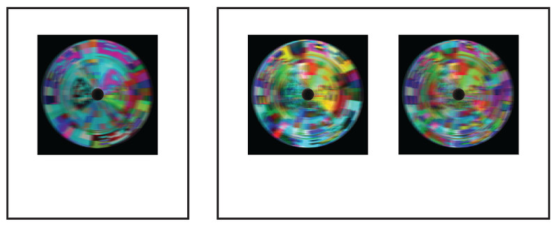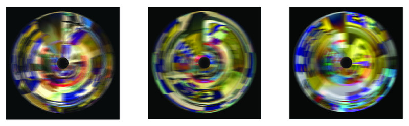 Three digital photographs as pure data sources are used to generate all the pictures of the series. The photos act as mapped surfaces on overlapping three dimensional objects (practically cones), and - similarly to the modification-layers of image-manipulating softwares - affect each other based on simple mathematical equations. |