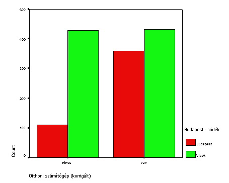 Otthoni számítógép (korrigált) * Budapest - vidék Crosstabulation