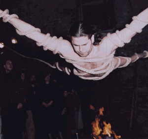 Performance: elõadás, élõkép, a mûvész személyi- sége és teste mint mûtárgy, egy besûritett életszakasz, amelyben a performer egy elõre meghatá- rozott szituációba helyezi magát.Határmûvészet. Képzõmûvészet? Szinház? Zene? Testmûvészet?  Gesamtkunstwerk?  Határok lepusztitása, a nagy õsegység újraélése. A ritus újraélesztése,hiszen a mûvészet eredete is a szakrális ritusokban keresendõ.A rituális mûvészet  célja mindig az én, az individum megsemmisitése,  a kollektivum megteremtése, s ezáltal a kozmikus spirituális teremtõerõk felébresztése,müködésbe hozása. A performernek mindig el kell jutnia a végsõ kérdéshez, bele kell kényszeriteni magát a lét és nemlét problémájába, és a lét határán bemutatnia az áldozatot. Akkor igazán hiteles az áldozat, ha annak tárgya maga a performer személyes és testi mivolta. A ceremónia során a performer mintegy beavatva  önmagát lelki transzfiguráción megy át, amit gyakran éppen testi megsemmi sülési kisérlet segit elõ. Egy ilyen dramatizált áldozati szertartás gyakran sokkolhatjaa közönséget, és metafizikai, pszichikai sikon okoz bennük katartikus átalakulást. Az ilyen elõadások eszköztára nem lehet más, mint az embe riség egyetemes archaikus szimbólumnyelve, ami idõtõl és kulturától függetlenül része az emberi pszichének. A szimbólumok megjelenitésére a legalkal- masabbak a természetes anyagok, mint a tûz, a viz, a kõ, a fa, a kötél és a vér.